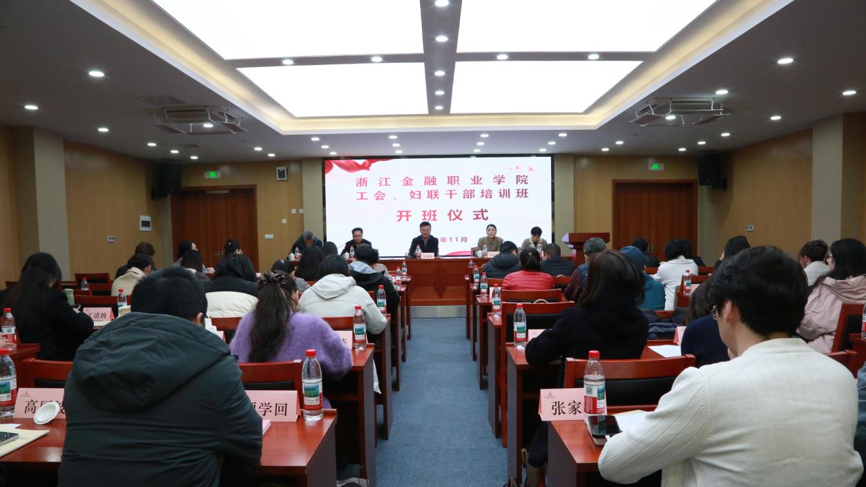 为深入学习贯彻党的二十届四中全会精神,进一步提升工会、妇联干部的政治素养与履职能力,2025年11月22日,浙江金融职业学院在浙江省妇女干部学校举办2025年工会、妇联干部专题培训班。学校党委委员、副校长张鹏超出席开班仪式并讲话,学校工会委员会委员、妇联执委会成员、各分工会主席、妇女小组负责人等近50名干部参加培训。开班仪式由学校工会负责人主持。